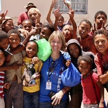 Volunteer Kathy Barton shares a moment with a child in South Africa.